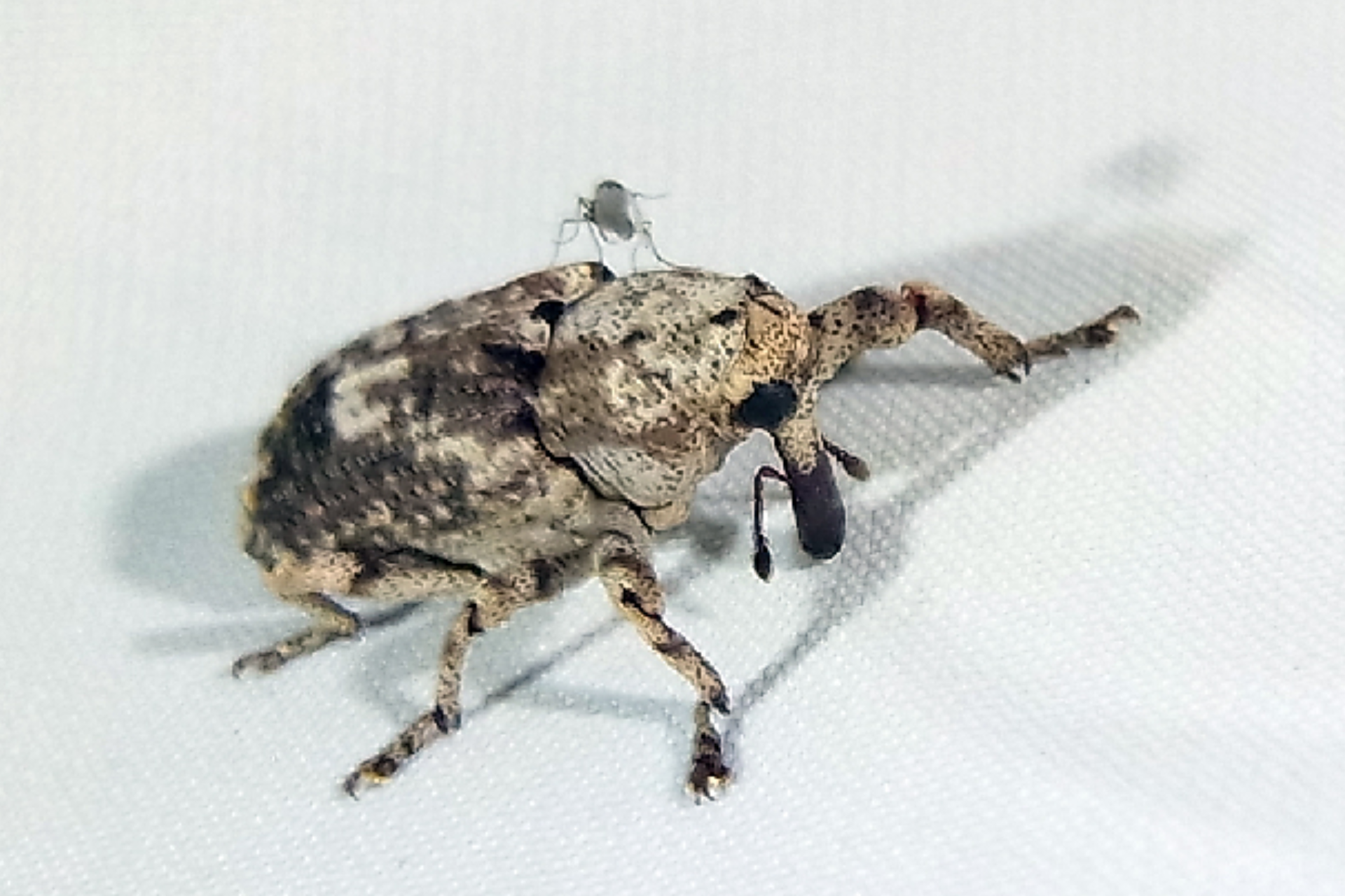 Der Kurzrüsslige Distelrüssler (Larinus obtusus) ist 2025 neu in Berlin aufgetaucht und breitet sich schnell aus. Irene hat die Art am Gehrensee gefunden und als Erste im ArtenFinder Berlin hochgeladen. Foto: Irene Pardo