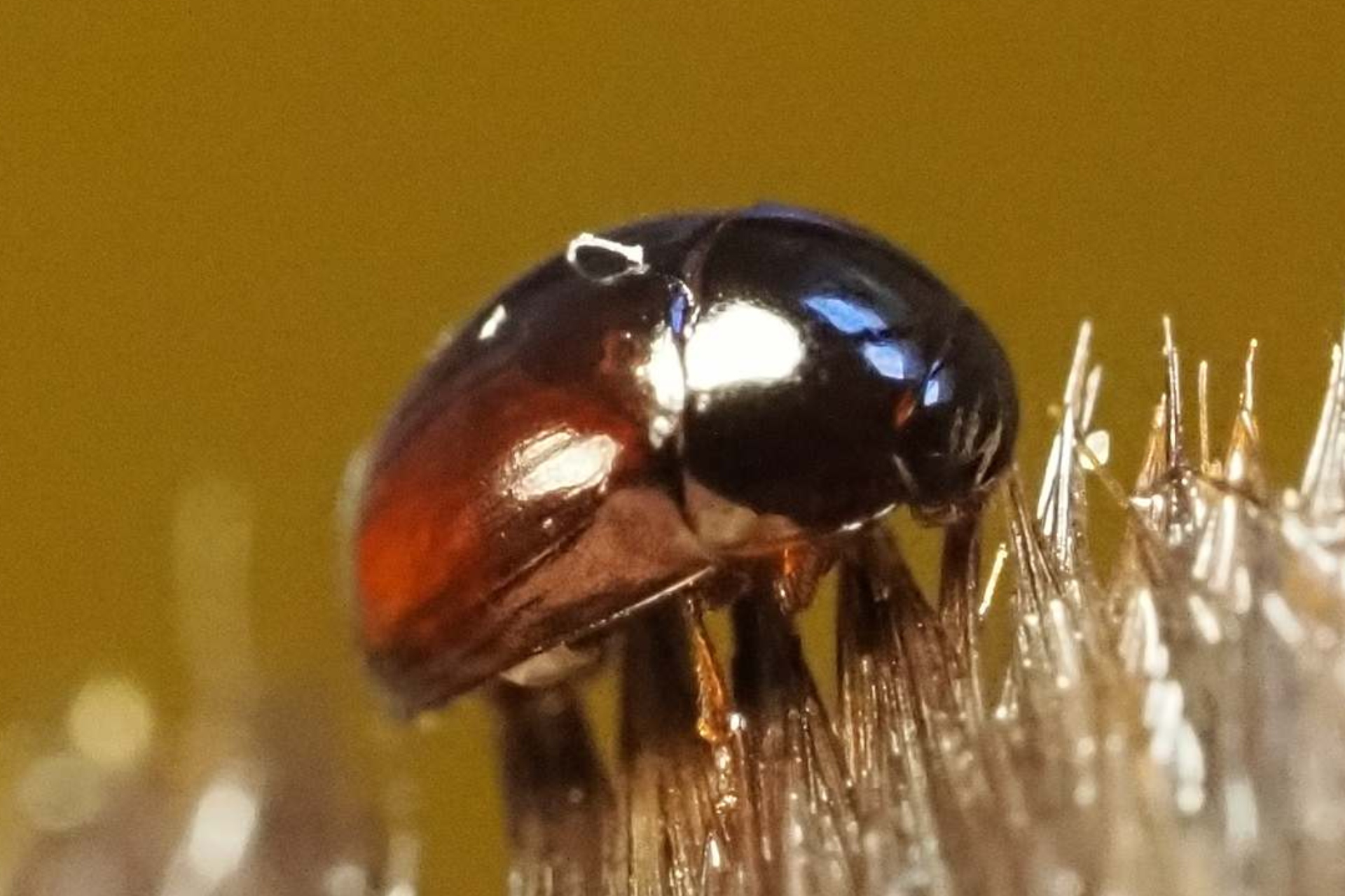Irene schreckt auch vor den kleinsten Arten nicht zurück. Olibrus corticalis gehört zu den Glattkäfern und ist nur 2-3 Millimeter groß. Foto: Irene Pardo